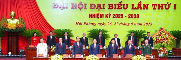 Sáng 27/9, tại Trung tâm Hội nghị và Biểu diễn thành phố, Đại hội đại biểu Đảng bộ thành phố Hải Phòng lần thứ I, nhiệm kỳ 2025 - 2030 chính thức khai mạc. Dự và chỉ đạo Đại hội có đồng chí Phạm Minh Chính, Ủy viên Bộ Chính trị, Thủ tướng Chính phủ nước Cộng hoà xã hội chủ nghĩa Việt Nam.